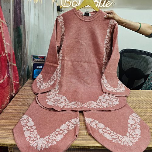 Bring elegance and warmth to your winter wardrobe with this premium woolen coordset in a charming peach and sea green combination. Crafted from soft, high-quality woolen fabric, this set ensures comfort while keeping you stylish—perfect for casual outings, office wear, or festive occasions.