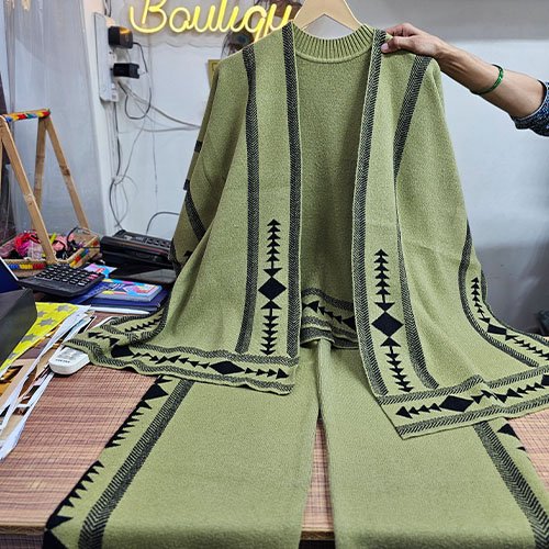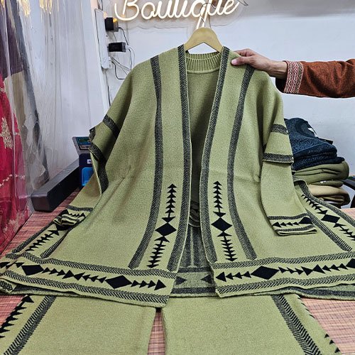 Stay cozy and chic with our Premium Woolen Coord Set with Shrug in elegant Olive Green. Crafted from soft woolen fabric, this free-size three-piece set offers warmth and style — perfect for daily wear or festive occasions. Price: ₹2,599