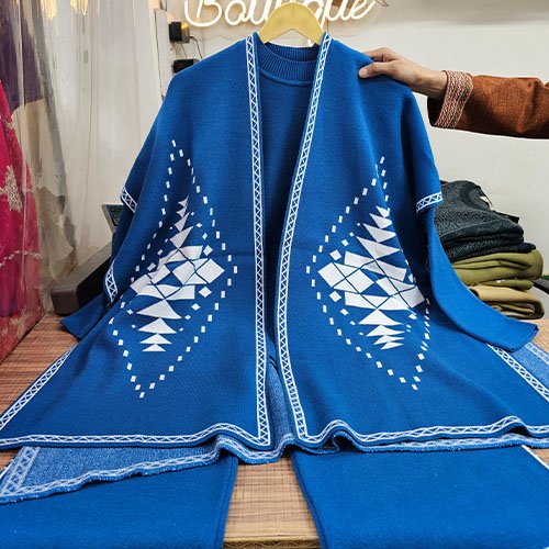 Product Name: Premium Woolen Coord Set with Shrug – Blue