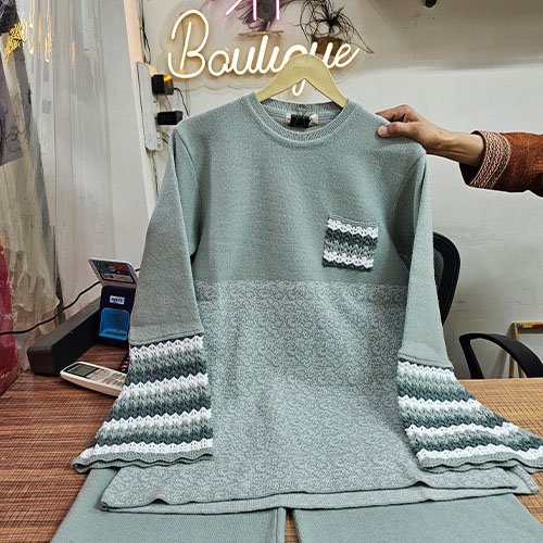 Our Premium Woolen Co-ord Set in Pista Green, Mouse & Black is all you need this season ❄️